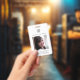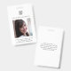Classic black and white identification badge with photo and logo on the front, and return address if lost on the back of the badge. This professional item also includes business location, job title, and employee id number.