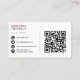 This elegant modern minimalist business card features a scannable QR code with simple clean modern red and black typography on a white background. Easily set up your scannable QR code by adding your website's URL address to create a modern, scannable QR code business card. Simply add your name, company or title and contact information to provide a trendy professional modern look for your business.