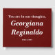 This simple funeral or memorial guestbook features the message "You are in our thoughts,", and the custom name and birth/death dates of the individual who has passed away. It could be used to record sympathetic wishes for the relatives and friends of somebody who has recently passed on. The text is white, and the background is dark red.