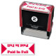 This plain rubber stamp design features the message "Paid In Full", between triangle shapes. It could be used to mark an invoice or bill as having been paid.