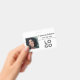 This basic custom identification badge features a sample photograph to the left of a name and job title, over a simple white background. A sample company or business logo is placed in the bottom right, which you can replace with your own custom logo or other image. The back of the photo ID badge contains contact details and additional information.