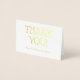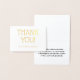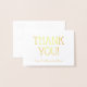 This basic, plain gold foil thank-you greeting card design features the message "THANK YOU!" on the front, along with a customisable message on the inside. It could be used to offer thanks to somebody who has done something special.