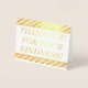 This basic and plain gold foil thank-you greeting card design features the message "THANK YOU FOR YOUR KINDNESS!" on the front, along with a personalised message on the inside. It could be used to offer thanks to somebody who has attended a wedding, a funeral, or some other event.
