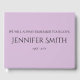 This elegant funeral or memorial guestbook features the message "We will always remember your love,", and the personalised name and birth/death dates of the individual who has passed on. The background is coloured light purple, and the text is coloured black. It could be used to record cherished memories of somebody who has recently passed on.