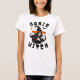 "Basic Witch" funny women's white Halloween t-shirt features a a spooky witch graphic and a modern and simple black and orange typography design with stars, bat and moon.