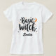 Modern Halloween custom shirt design features "Basic Witch" text in black calligraphy-style typography. Makes for the best personalised Halloween gift for her - your friend, girlfriend, sister or even your neighbour! Perfect to make them feel special, boost their confidence and get a unique and sassy gift!