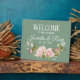Beautiful, modern and elegant wedding welcome tabletop sign features watercolor flowers, perfect for Spring. Pretty pink roses spray bouquet with fully customisable white text on trendy basil green background.