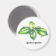 refrigerator magnet with a print of an original drawing of organic basil , a little ladybug doing her job ,and a cajun message