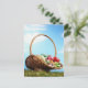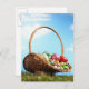 Basket filled with Easter eggs on grass, ground Holiday Postcard