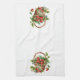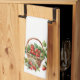 A gift for mum, a kitchen towel with a basket of fresh Strawberries all on a crisp white background.