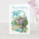 A charming glass flower basket vintage illustration filled with violets with customisable text on the front and inside.