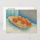 A fine art postcard featuring, Basket with Six Oranges (1888), a post-impressionist work by the Dutch artist Vincent van Gogh (1853-1890). This still life depicts a wicker basket overflowing with fruit, placed upon a table.