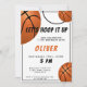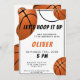 Basketball Ball Fun Sports Kids Birthday Invitation. The design has a fun text "Let's hoop it up" and basketball balls. Add your information.