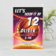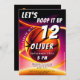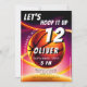 Basketball Ball Hoop it up Sports Birthday Invitation. This modern design has the text "Let's hoop it up" and a basketball ball on a vivid and vibrant background. The basketball theme makes it perfect for a basketball fan's birthday. Add your information.