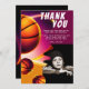 Basketball Ball Sports Photo Birthday Thank You Card. This modern design has a basketball ball on a vivid and vibrant background. The basketball theme makes it perfect for a basketball fan's birthday. Add your photo and personalise the text.