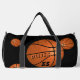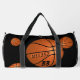 Basketball Ball Sports Player Name Number Duffle Bag. The design has basketball balls on a black background. Add your name and player's number.