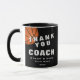 Modern Basketball Ball Thank you Coach Mug. This personalized mug for coach has basketball balls. Great keepsake mug for thanking sports coaches, high school team trainers, mom or dad coach, etc. Customize any text on the mug. Add the coach`s name, team name and year.