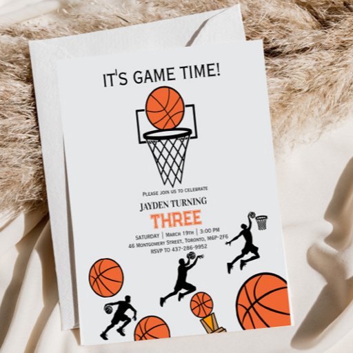 Bring the fun of the court to your child's big day! This children's birthday basketball invitation features a playful design that sets the tone for an action packed celebration. Great for kids who love sports and high energy parties!