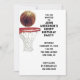 Funny basketball-themed birthday party invites featuring basketball and hoop.