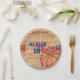These personalised paper plates that have a basketball design with a name, age, and event all on a basketball court with a basketball. Personalised these plates with a the birthday event, name and age year. Super fun plates to use at your kids basketball themed birthday party. You can change the colours in customise for any fonts.