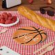 Paper plate featuring a basketball in black and orange and your name in white. All colours are customisable in the design tool.