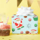 Basketball holiday gift wrap featuring funny Santa, Christmas candy and cookies design pattern.