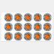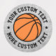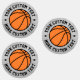 Round stickers featuring a basketball in the middle with your custom text wrapped around it.