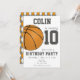 Basketball Design Invitation. An ultra cool stylised basketball with metallic black lines and orange textured leather look and a sporty and classy orange and grey argyle background on the back. Customise this invitation for any athletic kid in varsity style lettering. The prefect invite for a basketball themed party. Simple enough for older kids, sporty enough for any kid, and fun enough for any party.