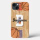 This personalised phone case has a basketball fans design with a basketball court and two illustrated basketballs. Personalised this phone case with a first or last name and a initial. A great personalised sports gift to give the basketball fan in your life that play card games.