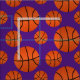 This custom basketball pattern fabric features orange basketballs on a purple background. The background color can be changed to any of your choice using the online tools.