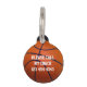 I looked through a lot of pet stores and web sites then I saw Zazzle and a tag with guitars in the background so we added his name and photo o nether front and our phone numbers on the back. It was beautiful and unique just perfect