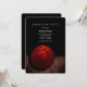 The invitation features a bold, black background that makes the vivid orange basketball pop. The dynamic design captures the energy and excitement of the court, with the ball casting a shadow that adds depth to the scene. The party details are presented in a striking white colour.