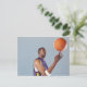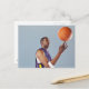 Basketball player balancing ball on one finger postcard
