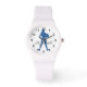 This custom wrist watch features a silhouette of a person holding a basketball and a text template for your name.