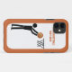 Basketball player with ball iPhone 5 case displaying a minimalist icon of a black silhouette of a basketball player trying to put the orange ball in the basket and your text on white background with a border in the same colour of the ball. This cool design is a template and it is completely customisable. Personalise it and add the text “Best basketball player” or monogram, name or your message. Some elements courtesy of vectorportal.com.