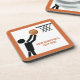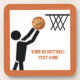 Basketball player with ball coaster featuring a minimalist icon of a black silhouette of a basketball player trying to put the orange ball in the basket and your text on white background with a border in the same colour of the ball. This cool design is a template and it is completely customisable. Some elements courtesy of vectorportal.com.