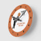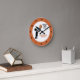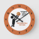 Basketball player with ball wall clock. It displays a minimalist pictogram icon of a black silhouette of a basketball player trying to put the orange ball in the basket and your text. Some elements courtesy of vectorportal.com.
