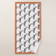 Basketball player with ball custom bath towel set. It features a minimalist icon of a black silhouette of a basketball player trying to put the ball in the basket on white background and an orange-brown border. The hand towel showcases a striped pattern in black, white and orange-brown stripes and the wash cloth is of orange-brown colour and your monogram in a frame. Some elements courtesy of vectorportal.com.