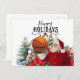 Basketball Santa Claus with Snowman for Christmas Holiday Postcard