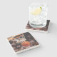 The coasters are gorgeous, a quality feel and heavy weight. They look like a precious archeological find. A rustic stone juxtaposed with a modern floral black and white print. I like the way the print goes slightly imperfect on the cut stone edges giving them a kind-of natural beauty.