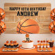 Who's got next? Hang this basketball themed birthday banner at your party! Easily edit with your child's name and birthday number. This design features an illustration of a basketball and a basketball court.