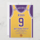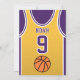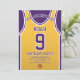 Celebrate your special day with this Basketball Jersey Birthday Invitation, designed for true basketball fans! Featuring a bold jersey design inspired by the iconic purple and gold colours, this invite is perfect for kids, teens, and adults who love the game. Personalise it easily with your name, age, party details, and even team number in just a few clicks. Available in multiple sizes, printed on premium quality paper with a wide range of finishes to match your style. Choose from different paper types, fast printing, and quick shipping so your invitations arrive on time. Whether it’s for a sports-themed party or a Lakers fan celebration, this invite is the perfect way to get your guests excited.