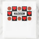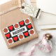 Basketballs & Hearts Custom Player Name Fun Sports Rectangular Stickers: Make your own customised basketball gift wrapping stickers for volleyball players, coaches and fans, featuring a beautiful black and white chequered pattern with basketballs on the white squares, and bright red hearts on the black squares. These add a fun and personal touch to gifts for basketball lovers!