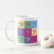 Are you looking for a gift for the music lover in your life? This mug has bass clef symbols done in yellow, purple, green, blue and pink.