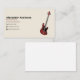 A business card for bass teacher or bassist with an illustration of an electric red bass guitar and contact information. Ideal for music teacher or lessons, musician performer, concert, etc.