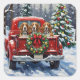 Basset Hound Christmas Red Truck Holiday Square Sticker