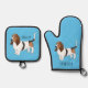 Basset hound dog cartoon illustration oven mitt & pot holder set