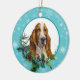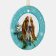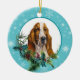 Basset Hound Evergreen Blue Snowflake Border Ceramic Ornament