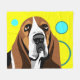 Sad eyes Basset Hound art with customizable yellow background