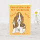 Add Dad's full name to greeting on front of this cute Basset Hound card, wishing Happy Father's day, and inside, insisting that, 'This is my happy face'. Add your names and message inside, before ordering card, or leave it as it is.